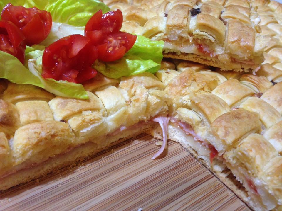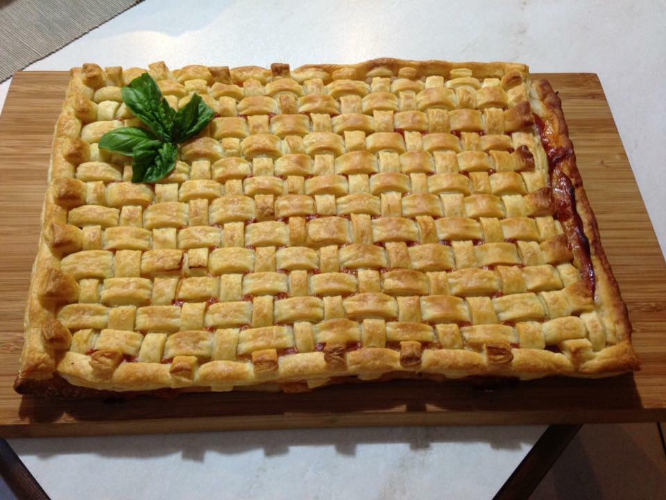 Coprite il tutto con la pasta sfoglia, io ho usato due rotoli perché li ho intrecciati come da fotogallery sotto.
