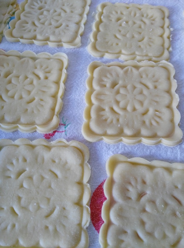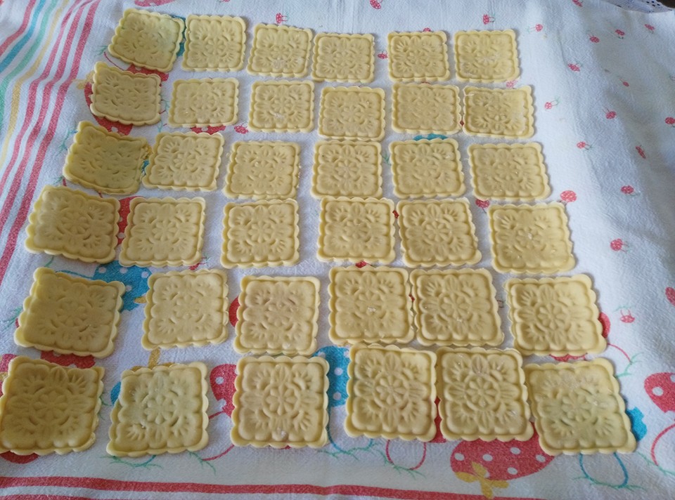 Con uno stampino a pressione tagliare e premere su ogni pezzo “stampando” in questo modo la pasta, mettere mano a mano i pezzi su un vassoio con un telo sotto.