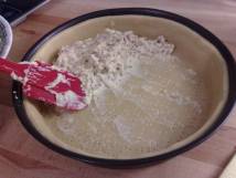Passiamo ora a stendere la pasta frolla fino ad uno spessore di 3 mm circa e ad adagiarla nella tortiera precedentemente imburrata (mi raccomando imburrare sempre la tortiera per una buona cottura) e inseriamo il ripieno…
