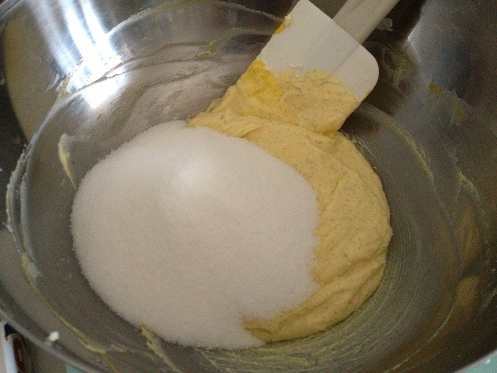 Mescoliamo i tuorli nella ricotta e poi aggiungiamo 300 g di zucchero semolato…