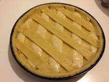 ….completiamo con le classiche striscioline di pasta frolla da mettere sopra e inforniamo a forno preriscaldato a 150°C statico per 1 ora e 30…