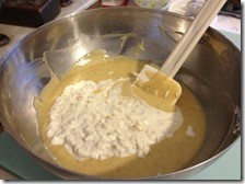 …montiamo quasi a neve gli albumi con i restanti 100 g di zucchero e lo incorporiamo nella farcia…