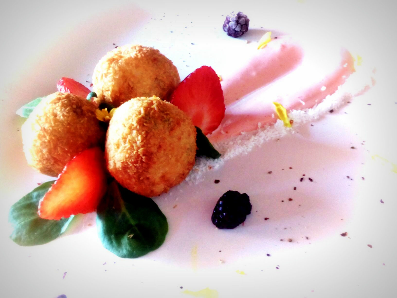 Roma – Polpettine di Spada con Panatura al Cocco e Maionese di Fragole.