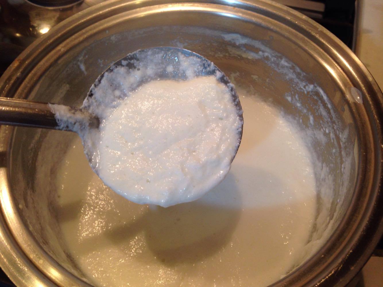 Portate a ebollizione il latte, aggiungete il sale e l’aceto quindi girate con un cucchiaio di legno. Dopo una decina di minuti inizierà a condensare, spegnete il fuoco e continuate a mescolare ancora per qualche minuto.