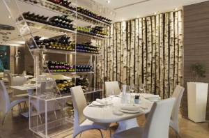 Un ambiente accogliente, luminoso e completamente insonorizzato, arredato in modo elegante e finemente ricercato dalla scelta delle luci alla mise en place, perfetto anche per organizzare pranzi di lavoro. Bellissima la vetrata che separa la cucina dalla sala, creata ad hoc per il ristorante, decorata con dei rami marini che lasciano intravedere il lavoro svolto dagli Chef Felice Lo Basso e Mirko di Mattia e dalla loro brigata.
