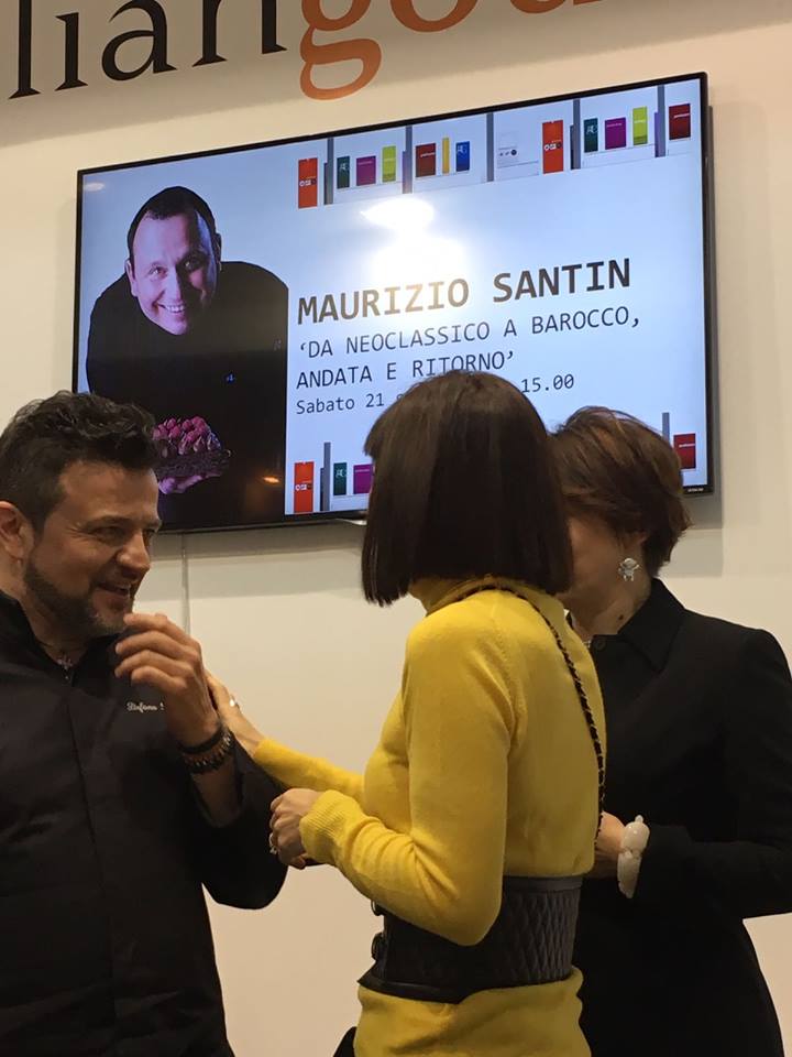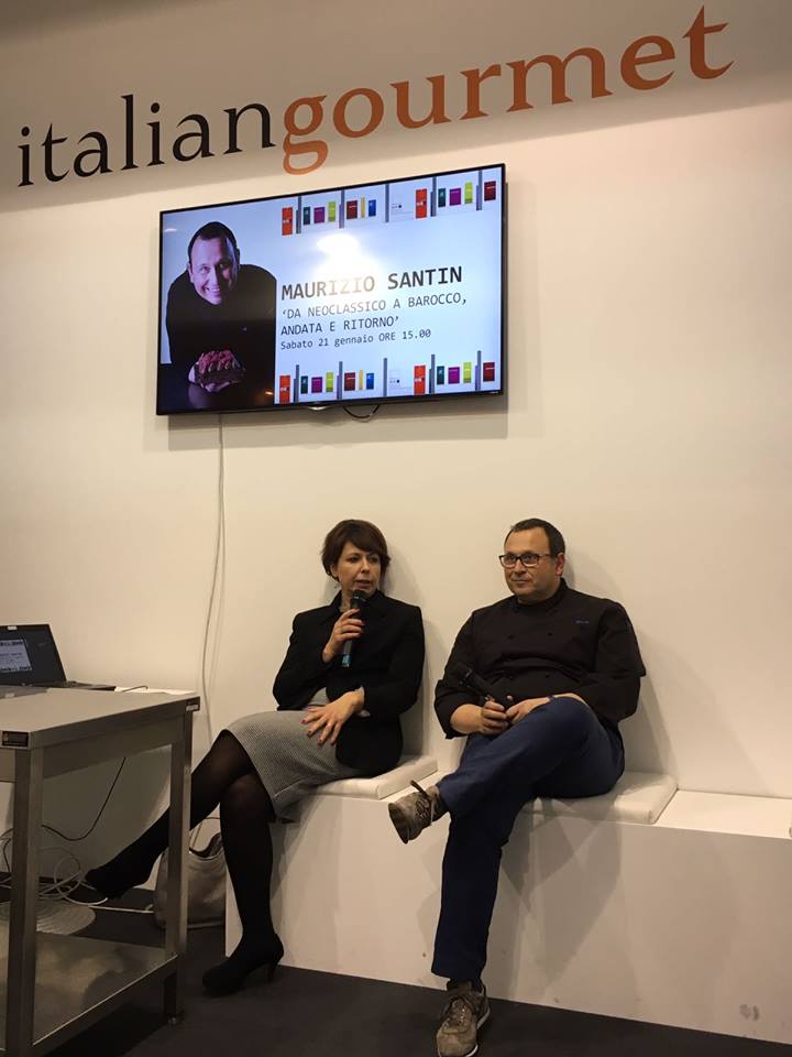 Rimini ci accoglie con un cielo grigio e due gradi di temperatura ma appena passati i tornelli all’ingresso, un mondo di colori e profumi ti fa dimenticare il freddo e la fatica del viaggio! Alle undici del mattino tutta la fiera e già invasa da una marea umana formata da addetti ai lavori giornalisti e da curiosi! Non facile organizzare la giornata districandosi in un labirinto di “…zioni”! Dietro ad ogni angolo dei quattro settori si incontrano infatti presentazioni, degustazioni e dimostrazioni!!! Profumi di pizza, di pane appena sfornato, di cioccolato, di caffè, decine e decine di metri di vasche di gelato presentato in ogni declinazione e gusto, immaginabile e non. Un esercito di hostess, in eleganti divise, ti invitano ad assaggiare le specialità proposte nei vari stand! Alcuni, come quelli delle attrezzature per panifici, pizzerie e ristoranti, ospitano chiaramente clienti professionisti del settore mentre, professionisti e non, si accalcano negli stand di attrezzature per pasticceri come Pavoni e Silikomart. Interessante ascoltare i discorsi mentre braccia e mani si protendono verso gli espositori dove fanno bella mostra le ultime novità di quelle aziende ma da appassionato di pasticceria, credo che tantissime persone acquistino stampi ed attrezzature anche solo per il gusto di “averle”. Ma Sigep non vuol dire solo stand, vuol dire anche incontrare quasi tutti i personaggi famosi della pasticceria, della ristorazione e del food & beverage in generale. Capita così di essere seduti davanti a Maurizio Santin, mentre Stefano Laghi si allontana, senza accorgersi di avere dietro Alessandro Borghese, il mitico Servida ed il grande Gino Fabbri! Credo che Sigep 2017 possa essere rappresentato da una sola parola: “tanto”! Tanto da vedere, tanto da degustare, tanto da imparare, tante materie prime da conoscere o conoscere meglio, tanti personaggi da vedere all’opera ed ascoltare perché la cucina, dolce o salata che sia, è fatta anche di questo. Come mi ha detto la simpatica e bravissima Cristina Lunardini, “…non c’è niente di più bello del prendere degli ingredienti e trasformarli, in prodotti dolci o salati, grazie alle tue mani e alle tue conoscenze…”! Ultimo ma non ultimo, si incontrano dal vivo tanti amici virtuali con cui si condivide sui social la passione per la cucina e per la pasticceria!