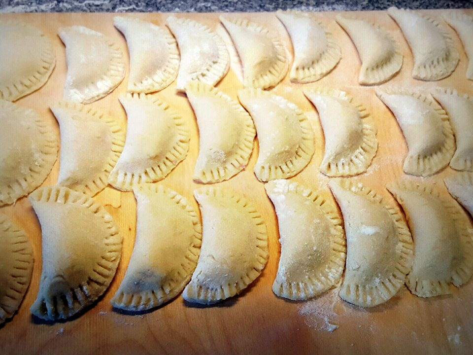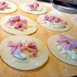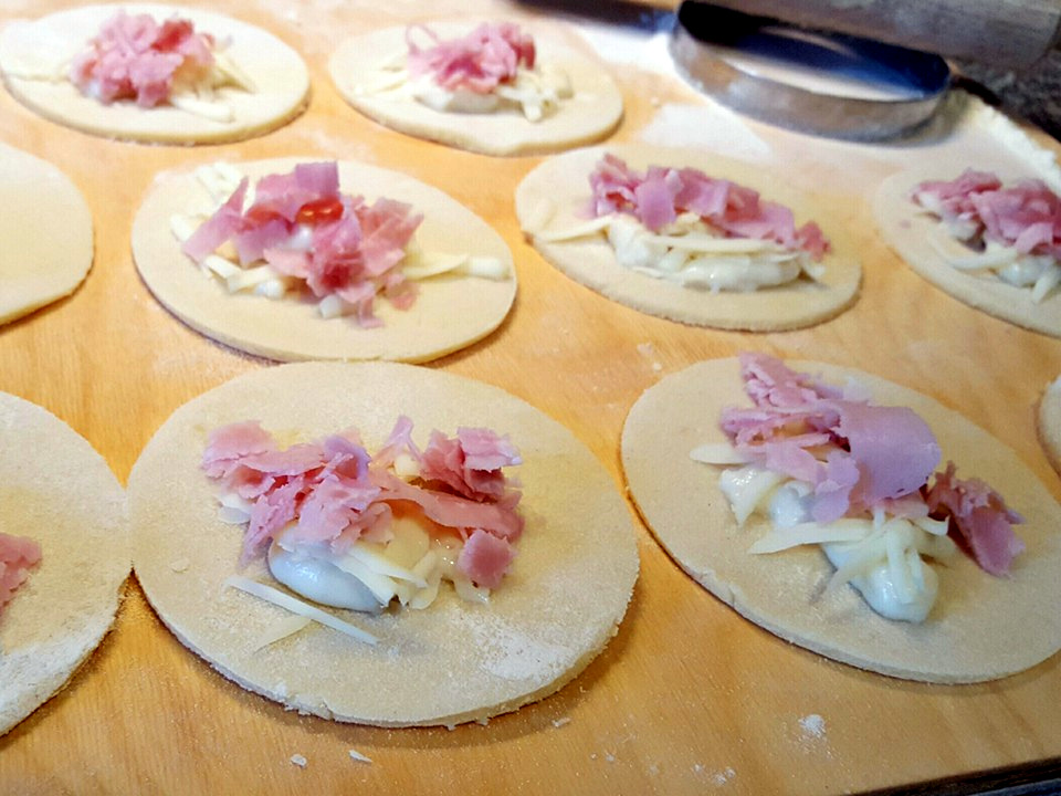 Stendere l’impasto e, con un tagliapasta a cerchio (o una tazza) ricavare dei dischi.