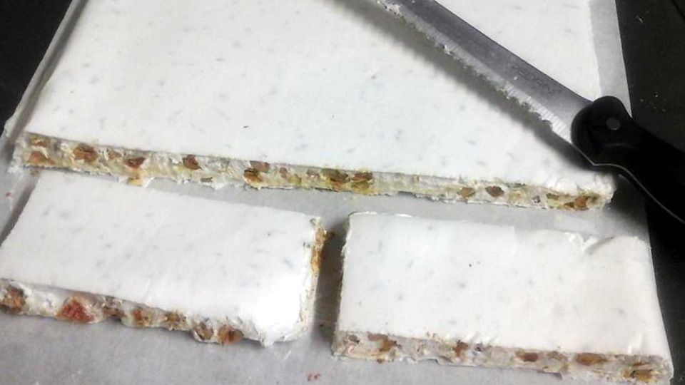4) Dopo averlo tagliato, conservare il torrone a temperatura ambiente, ben chiuso in un sacchetto di plastica.