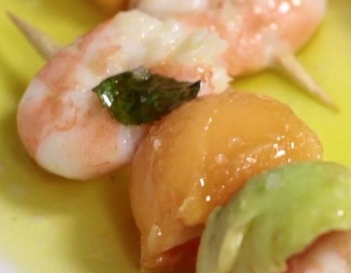 ROMA – Una ricetta dai forti connotati esotici. Gli spiedini di gamberi con avocado, melone e lime sono un ottimo aperitivo agrodolce.