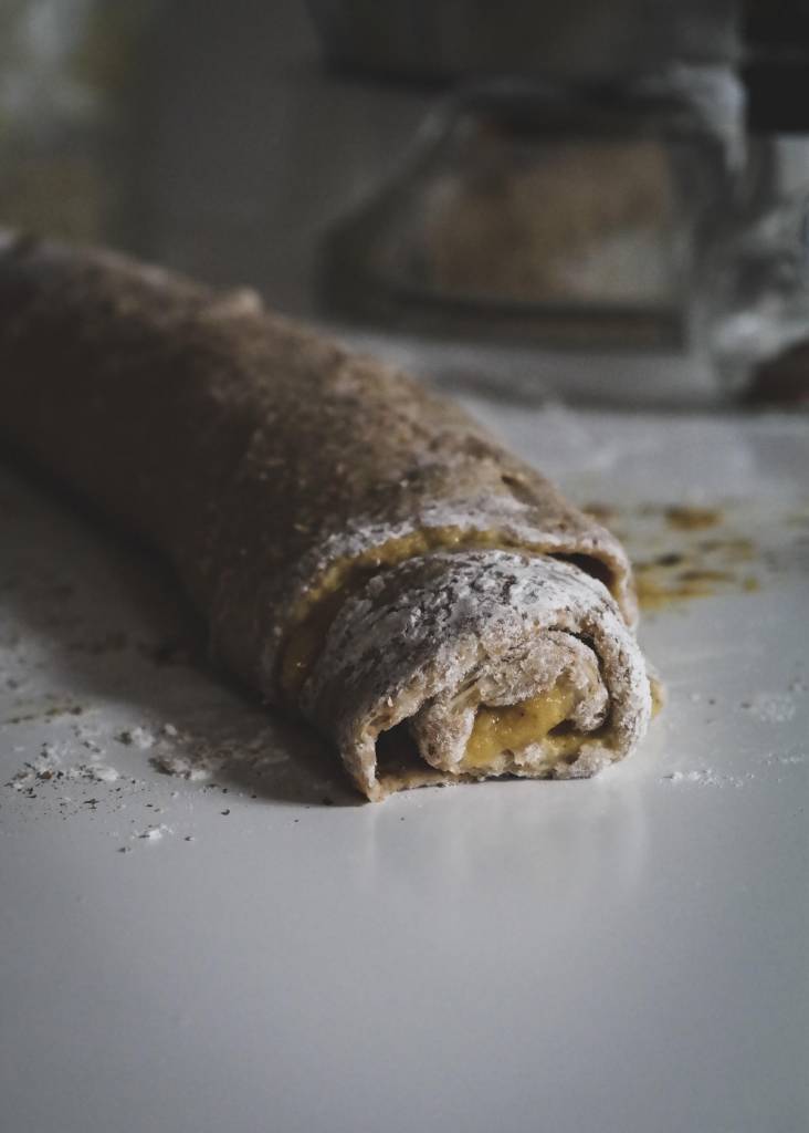 7 – ora, delicatamente avvolgiamo la pasta su sé stessa, formando un unico rotolo che andremo a tagliare in parti uguali;