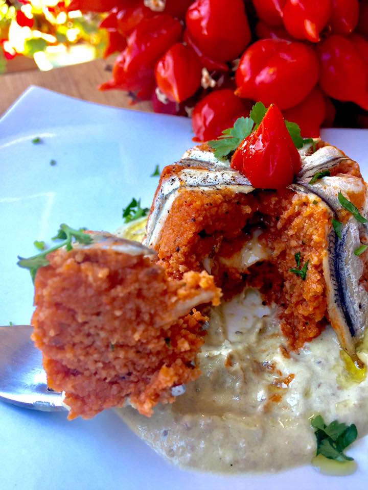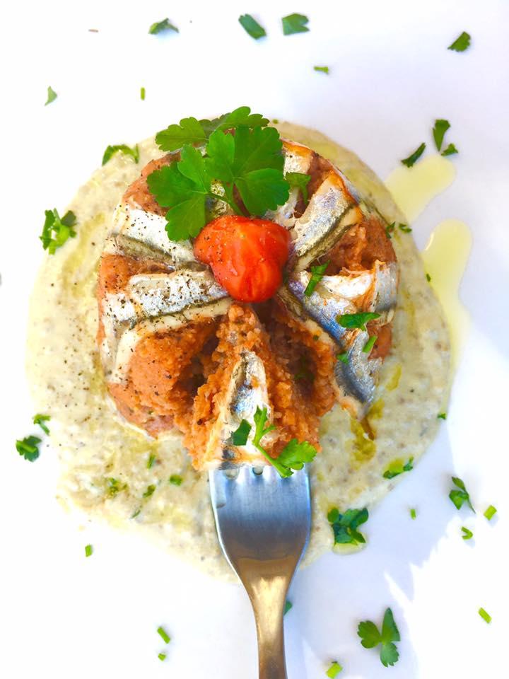 Roma – Tortino di Pane e Alici su Dressing di Fave.