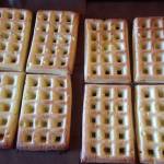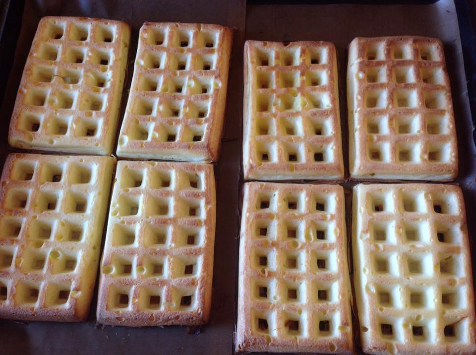 Versate il composto in 8 stampi per waffle e cuocete a 220°C per 8 minuti, sfornate capovolgeteli su una teglia ricoperta con carta forno, togliete lo stampo e rimettete in cottura per 5 minuti o fino a doratura.