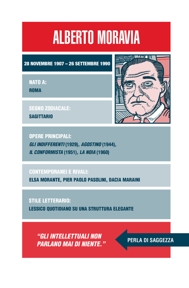Dante Alighieri, raccontano i posteri, fu precursore del marketing post mortem. Il suo fantasma sarebbe apparso in sogno ai figli per indicare loro dove erano custoditi gli ultimi canti del Paradiso che completavano il suo poema. Luigi Pirandello ogni notte rischiava la vita per via di sua moglie che si aggirava per la stanza brandendo un coltello mentre lui dormiva. Alberto Moravia era solito passeggiare con un gufo sulla spalla, mentre sua moglie, Elsa Morante, portava a spasso il suo gatto siamese tenendolo al guinzaglio. Di lei si narra pure che fu “stalker” di Luchino Visconti: quando andò a Venezia per incontrarlo, il regista non fu molto entusiasta di vederla. A quel punto, nel bel mezzo di piazza San Marco, la scrittrice gli mostrò le sue parti intime urlando e attirando l’attenzione di turisti e non solo.