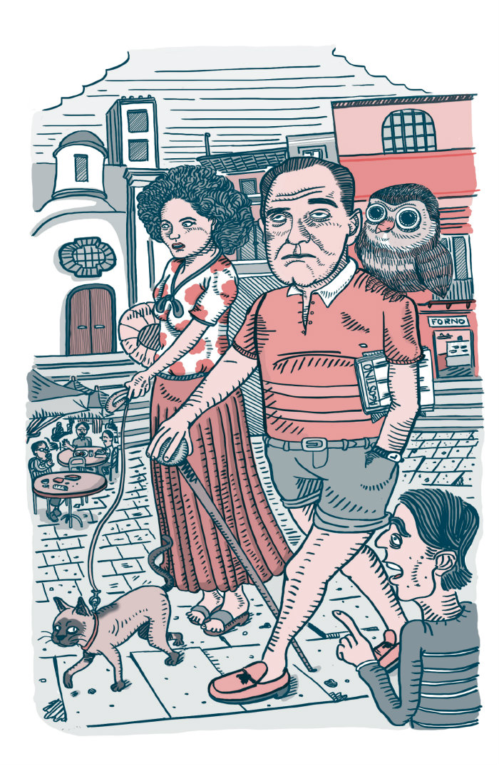Elsa Morante col gatto siamese e Alberto Moravia col gufo