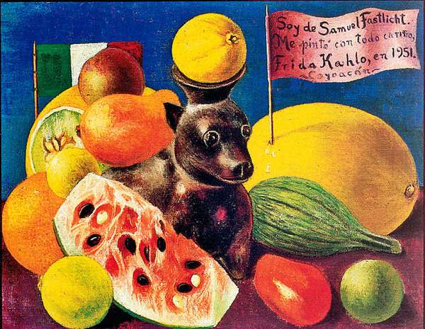 Ma non di solo giardino si tratta: in mostra sono esposte anche 14 opere estratte tra le nature morte di Frida e gli autoritratti con motivi ispirati alla natura. I più suggestivi: “Ritratto con collana di spine e colibri” (1940); “Il fiore della vita” (1944), “Natura morta con pappagallo e bandiera” (1951), e “Ritratto in un girasole”(1954). Il periodo coperto va dal 1940 al 1950, anni in cui le già cagionevoli condizioni di salute di Frida erano peggiorate, motivo per cui trascorse molto tempo in casa e nel suo giardino e l’interesse artistico per i soggetti naturali fu quindi intensificato.