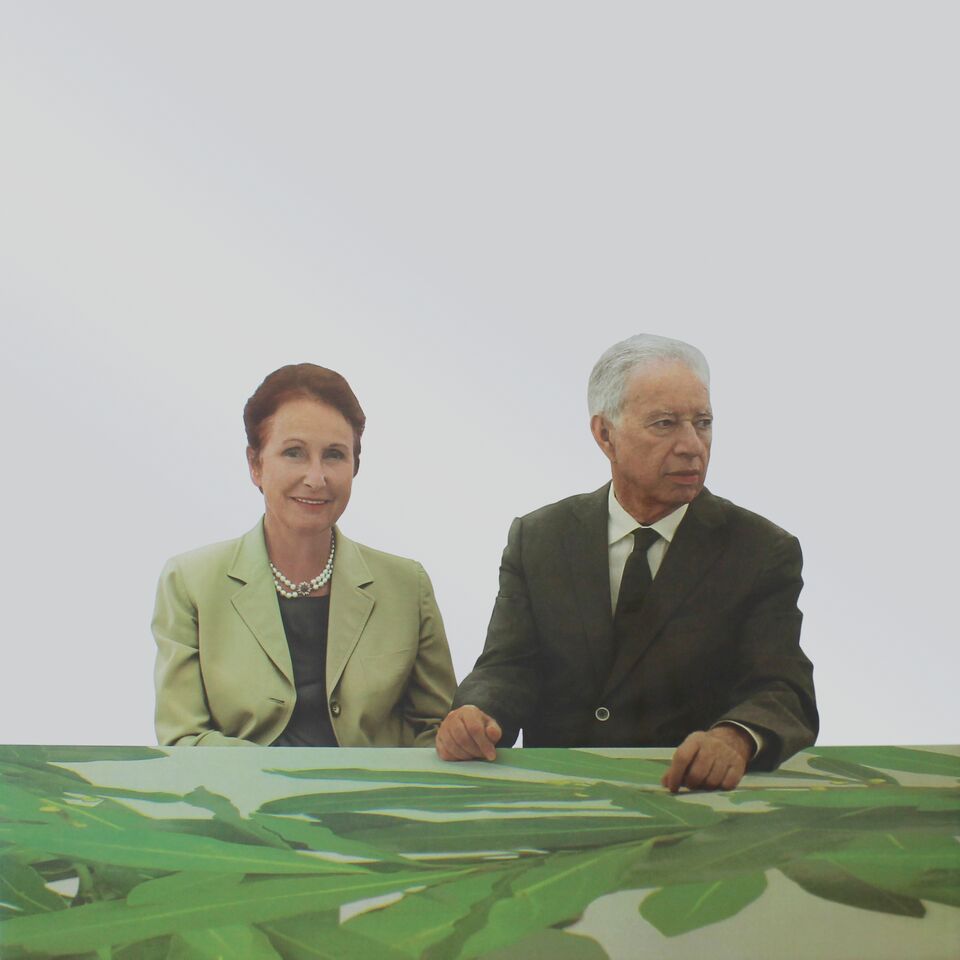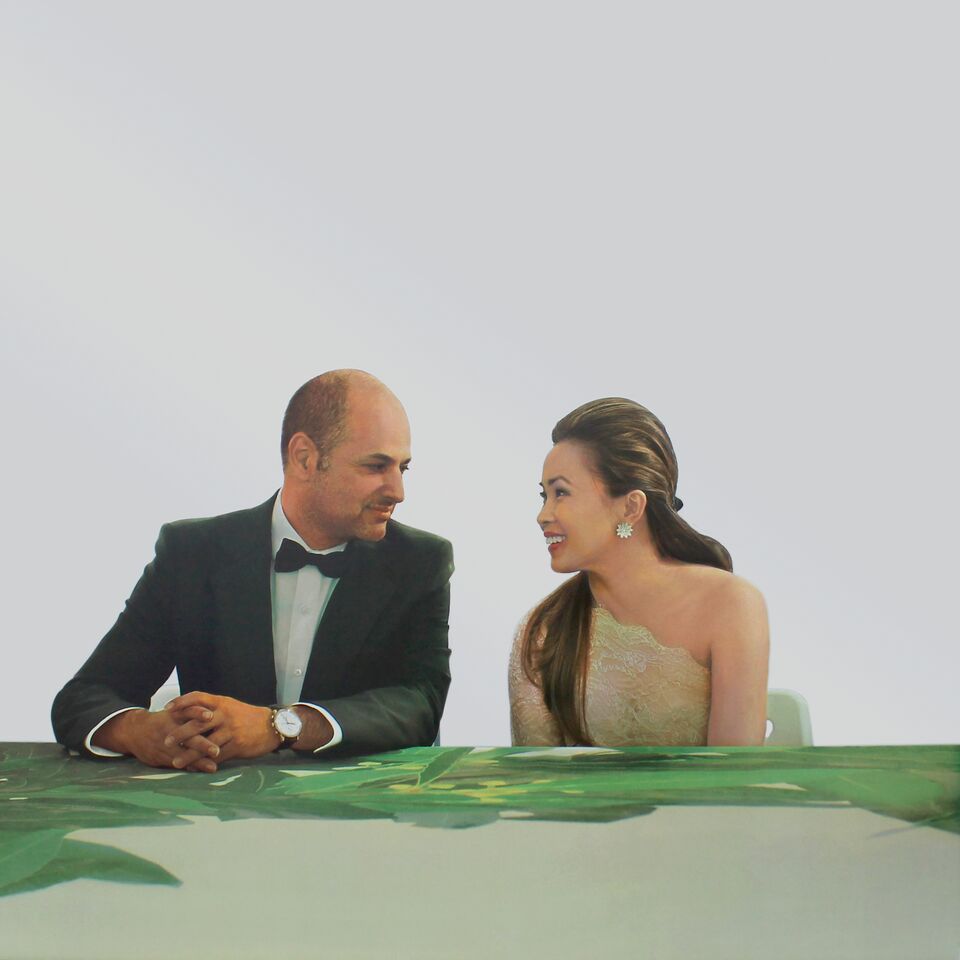 Ritratti intorno al Tavolo del Terzo Paradiso- Giulia e Massimiliano, 2015-Serigrafia su acciaio inox supermirror 150x150 cm Michelangelo PistolettoRitratti intorno al Tavolo del Terzo Paradiso- Giulia e Massimiliano, 2015-Serigrafia su acciaio inox supermirror 150x150 cm Michelangelo Pistoletto