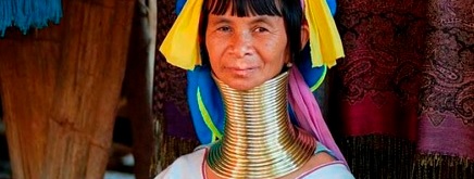 Indossare Collari di Metallo (Thailandia e tribù africane) Indossare anelli intorno al collo è (clicca sull'immagine per continuare a leggere)Indossare Collari di Metallo (Thailandia e tribù africane) Indossare anelli intorno al collo è un concetto di bellezza per delle tribù africane ed alcune in Thailandia. Il risultato di questa pratica in molti casi è l’impressione di avere un collo allungato. Gli anelli a spirale fatti di ottone vengono attorcigliati intorno al collo manualmente dalle donne fino a un massimo di venti volte.