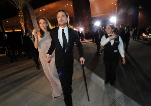 PALM SPRINGS, CA - JANUARY 07: Actors Angelina Jolie and Brad Pitt arrive at The 23rd Annual Palm Springs International Film Festival Awards Gala at the Palm Springs Convention Center on January 7, 2012 in Palm Springs, California. (Photo by Michael Buckner/Getty Images For The Palm Springs International Film Festival)