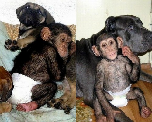 Ripudiato dalla madre, un cucciolo di scimpanzè viene adottato da un dipendete di uno zoo. Mai si sarebbe aspettato, il dipendente, che arrivati a casa sarebbe stato il suo cane a prendersi cura di lui proprio come se fosse stato uno dei suoi cuccioli da poco partoriti.