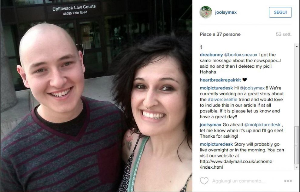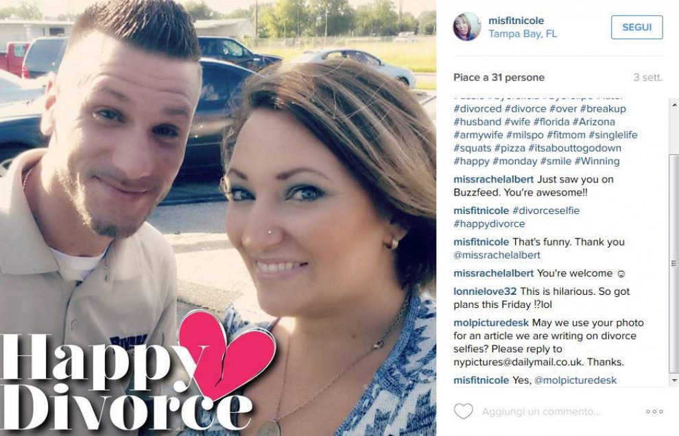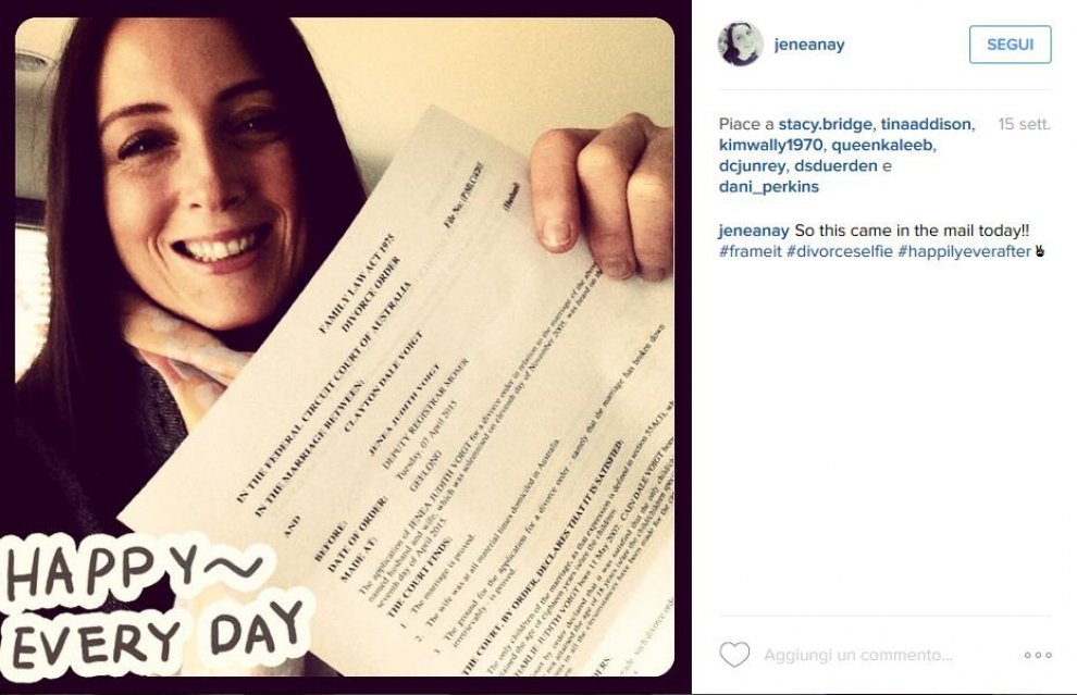 ROMA – C’è una nuova moda sui social, quella dei #divorceselfie: un autoscatto subito dopo aver firmato i documenti del divorzio. Gli ex coniugi si fotografano sorridenti davanti alle porte del Tribunale, liberi dalla fede nuziale. Il primo selfie è stato scattato un anno fa da una coppia della Florida che si mostrava entusiasta all’idea di avere appena rotto la promessa matrimoniale.