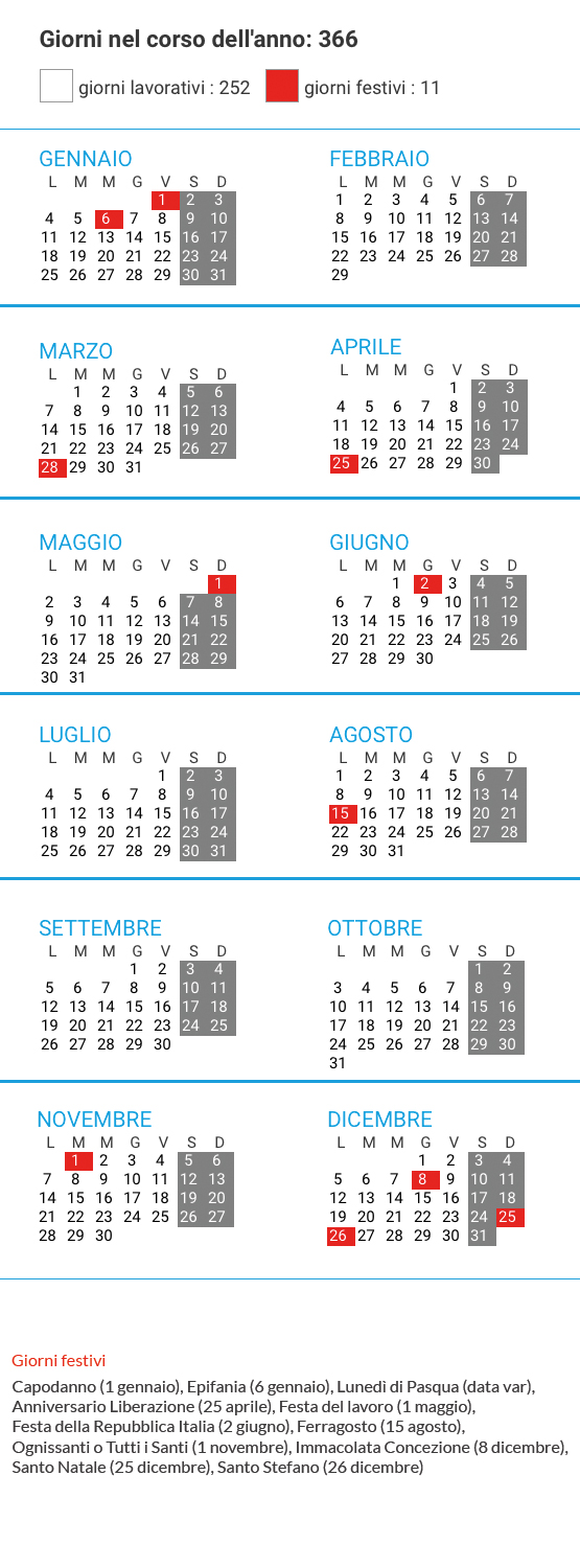 ROMA – Impiegati e i dipendenti che non l’abbiano ancora fatto diano un’occhiata al calendario 2016: il prossimo, a differenza dello sfortunato 2015, è pieno di giorni strategici per andare in ferie e assicurarsi “ponti” di vacanza davvero allettanti, tant’è che con 7 giorni di ferie si può stare a casa un mese, basta solo prendersi le ferie al momento giusto e soprattutto prima degli altri… Ecco mese per mese i giorni strategici con i ponti.
