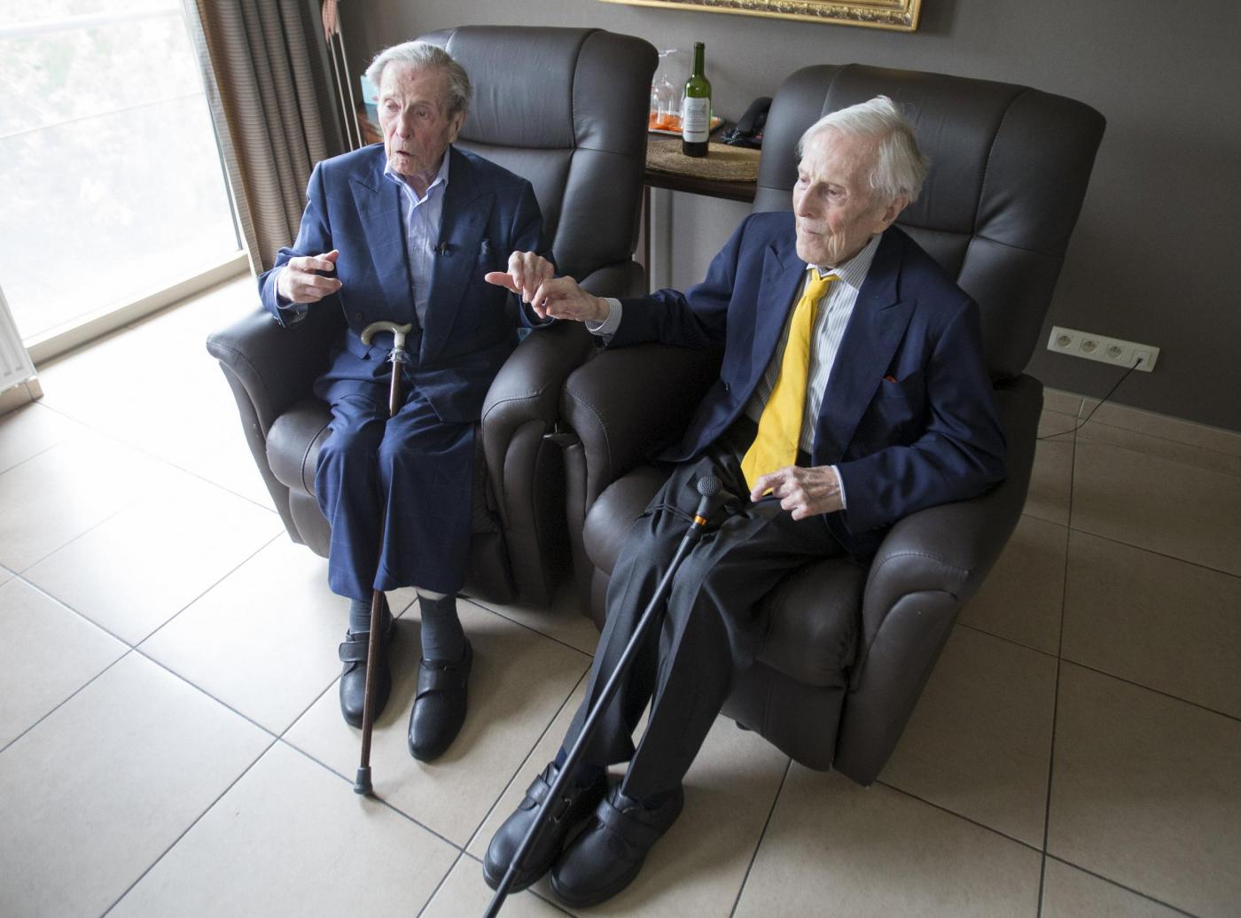 BRUXELLES (BELGIO) – I due gemelli di questa gallery hanno 102 anni e vivono in Belgio. I due fratelli hanno avuto la fortuna di nascere insieme, ma anche quella di invecchiare insieme.