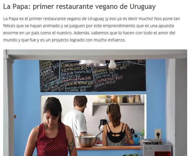 MONTEVIDEO (URUGUAY) – Uruguay: nel Paese più carnivoro al mondo (101 kg carne a testa all’anno), da poco meno di un anno ha aperto il 1° ristorante vegano. Si chiama “La Papa” ed è nato a Montevideo, la Capitale, grazie all’iniziativa di un gruppo di attivisti.