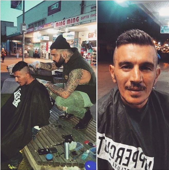 Nasi Sobhani, il barbiere che taglia capelli gratis ai barboni di Mebourne14