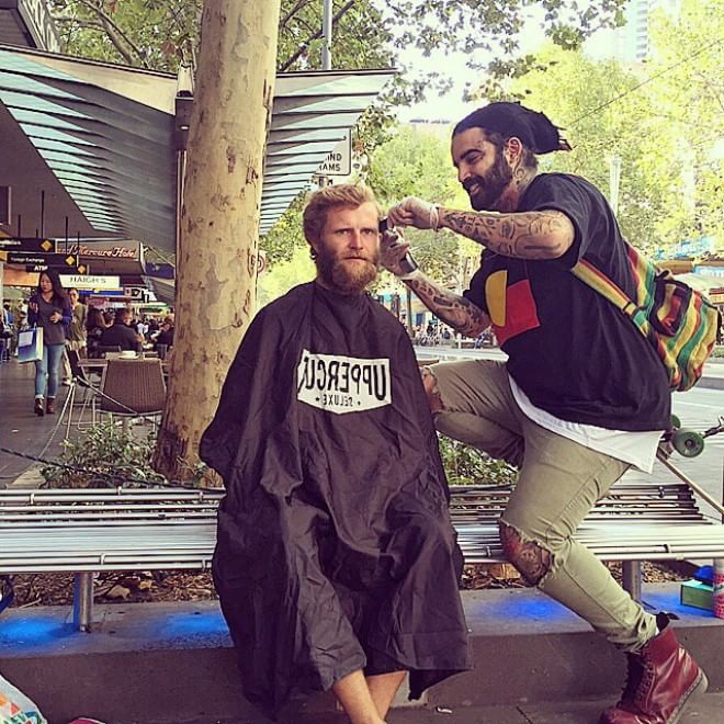 Nasi Sobhani, il barbiere che taglia capelli gratis ai barboni di Mebourne3