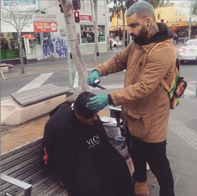Nasi Sobhani, il barbiere che taglia capelli gratis ai barboni di Mebourne1