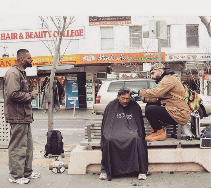 Nasi Sobhani, il barbiere che taglia capelli gratis ai barboni di Mebourne16
