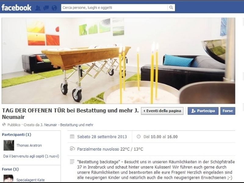INNSBRUCK (AUSTRIA) – L’agenzia funebre “Bestattung backstage” ha promosso una giornata dove futuri clienti possono girare per il loro negozio e scegliere la bara in cui vorranno essere sepolti. La trovata sta avendo un discreto successo tra la gente di Innsbruck, in Austria, e ai clienti viene data la possibilità di sdraiarsi dentro il modello di bara che si preferisce oltre che sceglierne il colore. L’iniziativa, dicono gli organizzatori dell’evento, è stata pensata per esorcizzare la paura della morte.