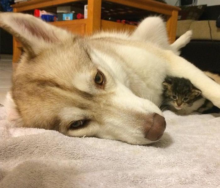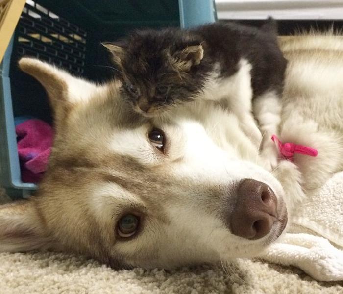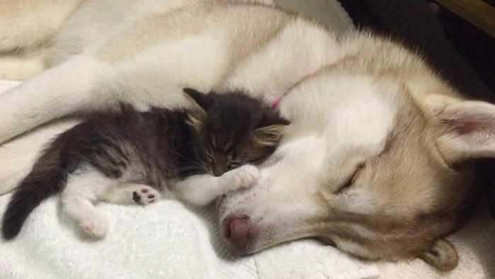 LOS ANGELES – Rosie è una gattina di tre mesi che è convinta di essere un cane. Salvata piccolissima da tre sorelle californiane, da allora vive con i suoi nuovi proprietari e diversi animali tra cui Lilo, una splendida femmina di Husky che la sta allevando come se Rosie fosse uno dei suoi cuccioli.