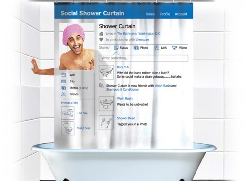 ROMA – Che la follia umana non ha confini lo sapevamo… e ne abbiamo ancora una volta la conferma: dei “geni” si sono inventati la tenda da doccia che riproduce una pagina del profilo Facebook. Con il tipico blu del social network più famoso al mondo, con tanto di post in bacheca e finestrella trasparente da cui affacciarsi e andare a occupare il posto della foto-profilo.