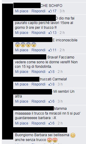 Alcuni dei commenti alla foto di Barbara D'Urso in cui appare struccata