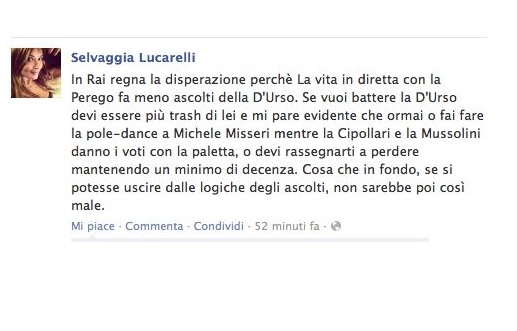 A dare il via alle danze di critiche è stata la blogger Selvaggia Lucarelli (l’unica che, essendo “super partes”, ha semplicemente dato un giudizio personale in terza persona) definendo “trash” la tv di Barbara D’Urso e giustificando così i maggiori ascolti rispetto alla concorrenza.