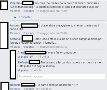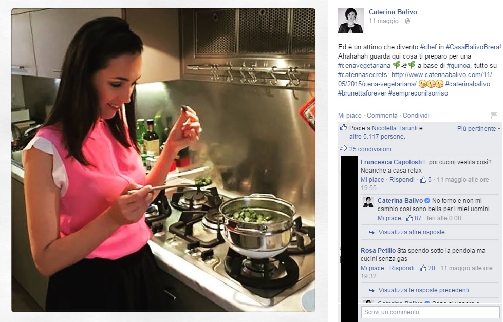 ROMA – Caterina Balivo, foto su Instagram fa infuriare i fan: “Non siamo scemi”. I fan di Caterina Balivo si sono scatenati su Instagram a causa di una foto postata dalla conduttrice. Qualche giorno fa Caterina Balivo ha postato sui Social Network un selfie in cui è intenta a cucinare delle zucchine e diffonde sul suo blog la ricetta della sua cena vegetariana. I fan però si sono accorti che la foto ha qualcosa di strano: nel selfie, infatti, la Balivo sembra cucinare con i fornelli spenti. Il particolare non è certo sfuggito ai fan più attenti che, sotto la foto, non hanno esitato a pubblicare numerosi commenti e critiche… alcune civili e altre decisamente poco ortodosse (in foto alcuni esempi).