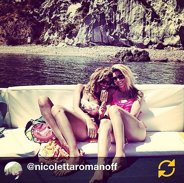 “Come Fabio Fulco, che per questa piacevole trasferta marina si è fatto accompagnare dalla statuaria fidanzata Cristina Chiabotto. Tutti insieme in barca, alla scoperta delle meraviglie delle calette di Ponza. Poi hanno preso un aperitivo e cenato in un ristorante, accolti dal padrone di casa Oreste Romagnolo. Fulco e la Chiabotto erano arrivati il giorno prima con una nave partita da Terracina, che tra l’altro ha affrontato anche un mare abbastanza agitato che ha infastidito l’ex miss Italia. Sull’isola la bella conduttrice ha fatto shopping, scegliendo anche costumi interi, e buona parte del tempo libero lo ha trascorso con la Romanoff, con la quale non ha resistito a un selfie pubblicato su Twitter, che testimonia la loro amicizia. Ma di foto fatte con il cellulare e condivise con chi la segue ne ha fatte altre, tra queste anche una bellissima e romantica immagine con il compagno Fabio”