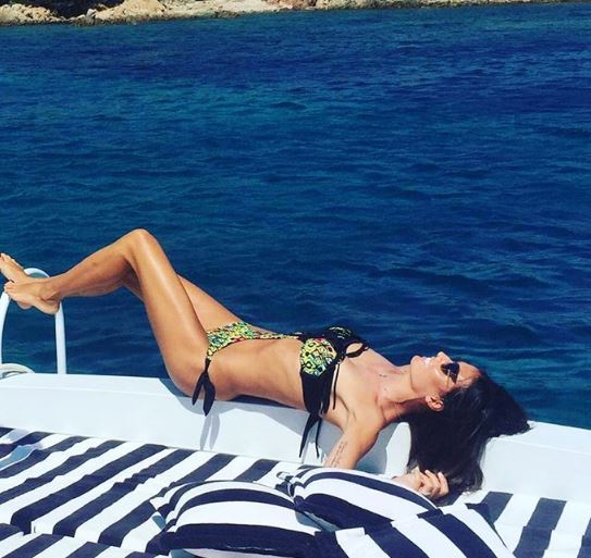 “Crisi? Tra me e Flavio c’è crisi? In effetti, in questo preciso istante sono sdraiata in barca al largo di Mykonos con due uomini accanto… Aspetta che guardo bene: sono Flavio e Nathan Falco, quindi direi niente crisi”.