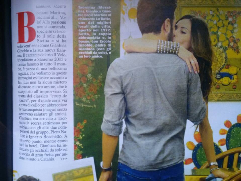 TAORMINA – Gianluca Ginoble bacia Martina, nuova fiamma. A pubblicare le foto è la rivista Chi, che mostra il cantante del trio Il Volo in teneri atteggiamenti con la ragazza, che, neanche a dirlo, è bellissima. Archiviata la storia con Pasqualina Sanna, l’artista sembra più felice e rilassato che mai in dolce compagnia.