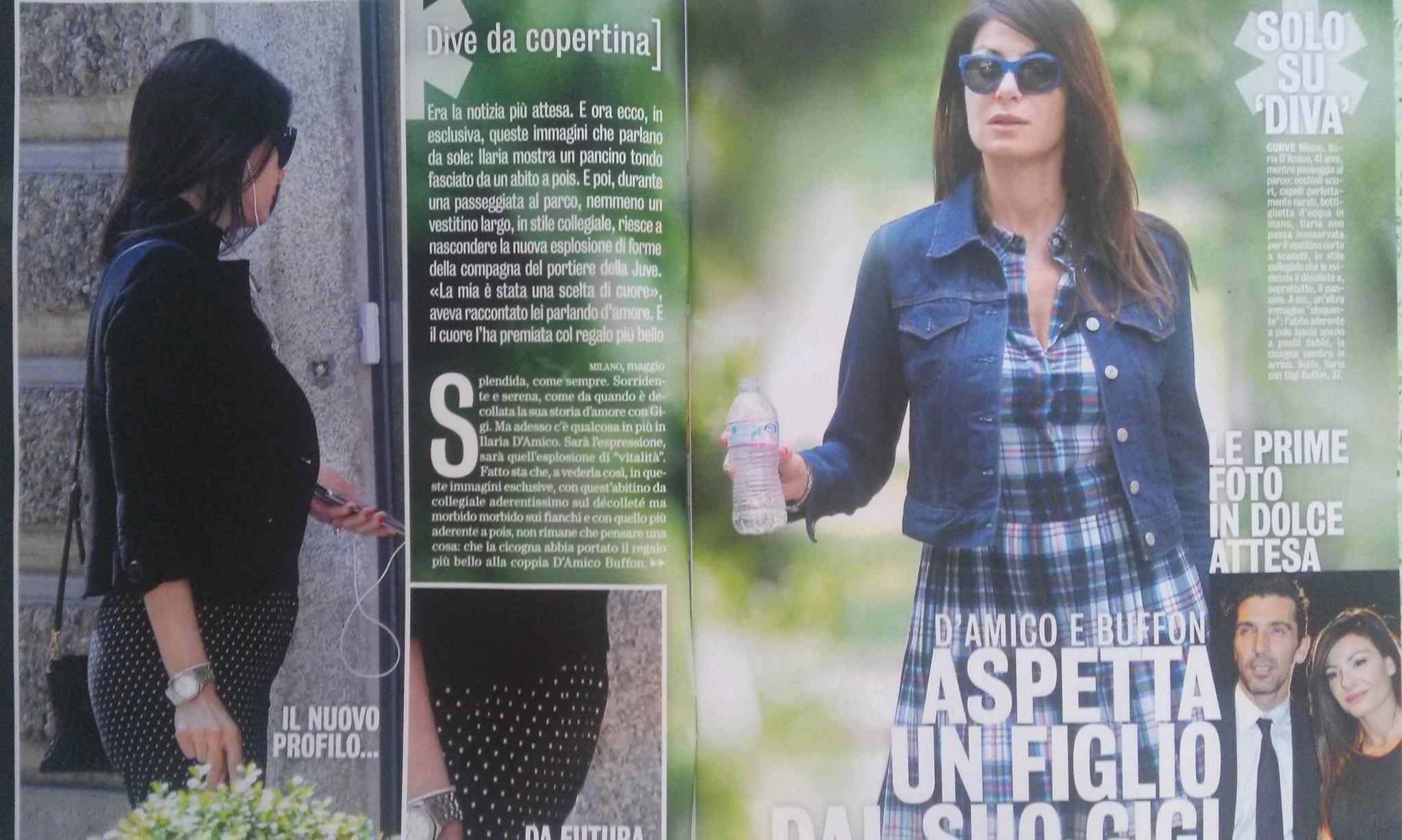 “Era la notizia più attesa. E ora ecco, in esclusiva, queste immagini che parlano da sole: Ilaria mostra un pancino tondo fasciato da un abito a pois. E poi, durante una passeggiata al parco, nemmeno un vestito largo, in stile collegiale, riesce a nascondere la nuova esplosione di forme della compagna del portiere della Juve”.