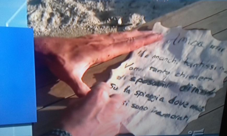 MILANO – Isola dei famosi, Brice Martinet invia lettera moglie: “Mi sposi di nuovo?” Elena Falbo, moglie del naufrago, è stata ospite della trasmissione pomeridiana condotta da Barbara d’Urso, Pomeriggio Cinque. La d’Urso ha mandato in onda alcune immagini inedite che mostrano Brice mentre scrive una lettera alla moglie su una specie di foglio. Poi la mette in una bottiglia di vetro e la lancia nel mare. Purtroppo torna indietro per via della corrente. Il contenuto della lettera è stato svelato in diretta dalla d’Urso. Brice ha scritto alla moglie: “Mi sposi di nuovo?”. Dallo studio è arrivata la risposta di lei, commossa: “Certo che sì”.