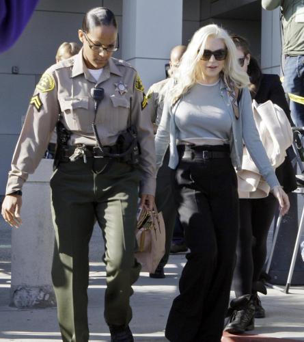 Solo domenica sera Lindsay Lohan è comparsa sul red carpet di uno dei vari party organizzati a Los Angeles dopo i Golden Globes 2012, con un lungo (ed elegantissimo) abito color cipria rovinato solo dalle sue orride chiome platinate (e rovinate). Ieri però la più che irrequieta “diva” ha dovuto indossare abiti molto diversi per presentarsi, ancora una volta, in Tribunale (che ormai può essere considerata la sua seconda casa) per discutere della faccenda del suo servizio sociale che sta prestando facendo le pulizie presso l’obitorio della contea di LA.