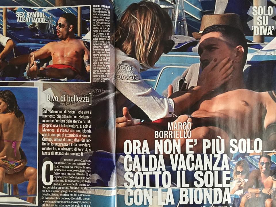 “Così intimo con una ragazza non lo si vedeva da tempo – scrive D&D – Marco Borriello è sempre scolpito, perfetto, una statua umana. E si capisce perché le donne lo considerano il calciatore più bello d’Italia (…). La nuova amica è una vecchia conoscenza di tanti personaggi famosi e il suo profilo Instagram è un tripudio di foto con Bobo Vieri, Elisabetta Gregoraci, Claudia Galanti. Ne spunta addirittura una con Emma e l’altra con Fabio Borriello, fratello di Marco che ora è fidanzato con la cantante di Amici (..)”.