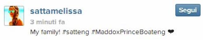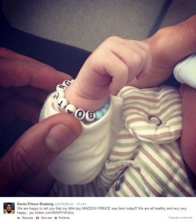 DUSSERDORF – Melissa Satta è mamma: martedì 15 aprile è nato Maddox Prince, figlio dell’ex Velina e del calciatore Kevin Prince Boateng. Melissa ha dato alla luce un bel maschietto e il nome è stato rivelato dal papà stesso che non ha perso tempo nel postare una foto della manina del nuovo arrivato su Twitter.