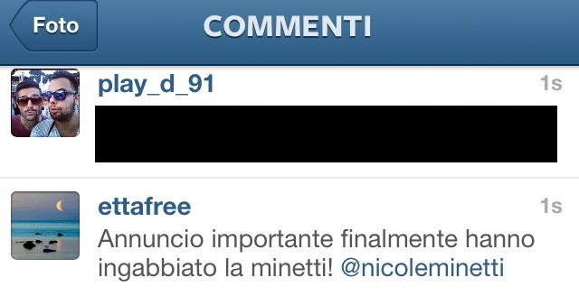 In foto, alcuni dei commenti apparsi sul profilo Instagram di Nicole Minetti