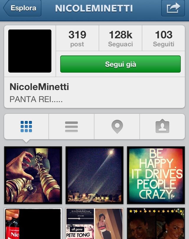 Su Instagram la foto profilo di Nicole Minetti è cambiata: adesso è uno schermo tutto nero (sembra quasi in segno di lutto) e la sua ultima foto risale a 3 settimane fa.