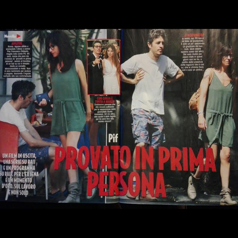 ROMA – Pif, addio Giulia Innocenzi: ha una nuova fiamma! Lo riferisce il settimanale ‘Novella 2000’, che pubblica gli scatti della coppia mentre fa colazione in un bar. Non si conosce l’identità della misteriosa donna. Dal 27 ottobre, si legge sul settimanale, sarà al cinema con un nuovo film ‘In guerra per amore’, da novembre inoltre andrà in onda su Rai1 la serie ispirata a ‘La mafia uccide solo d’estate’ e per il 2017 lo aspetta la conduzione su Rai3 di una striscia quotidiana.