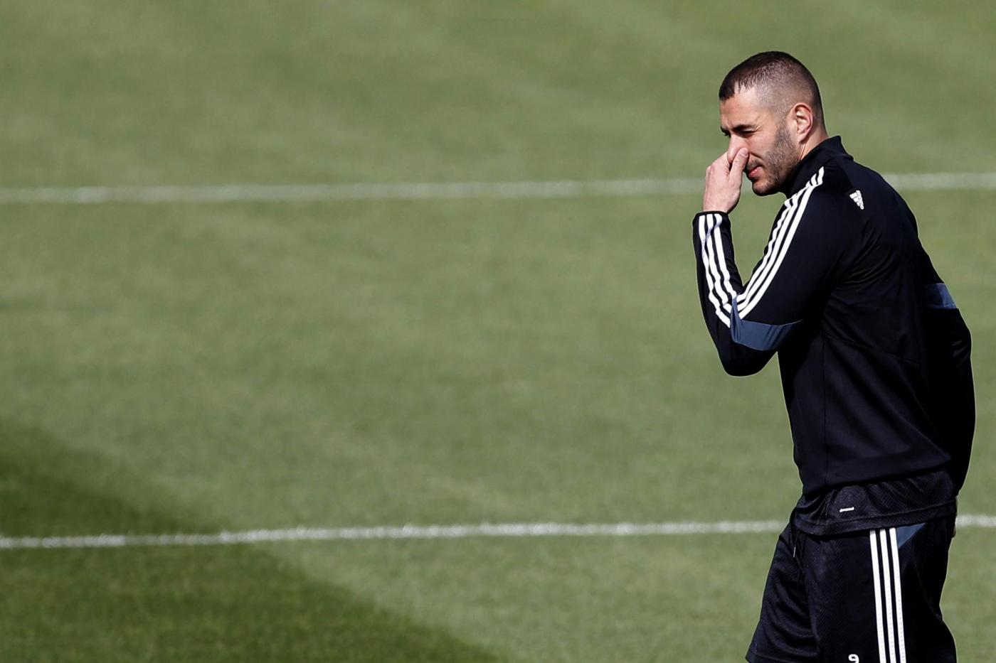 Real Madrid's French forward Karim Benzema attends a training session held at the team's sports complex in Valdebebas, Madrid, Spain, 13 April 2015. Real Madrid will face Atletico Madrid in a UEFA Champions League quarter final away leg match on 14 April. EFE/Javier Lizon Lapresse Only italyCarlo Ancelotti e Marcelo,in conferenza stampa dopo l'allenamento per l'incontro di Champions League contro l'Atletico Madrid