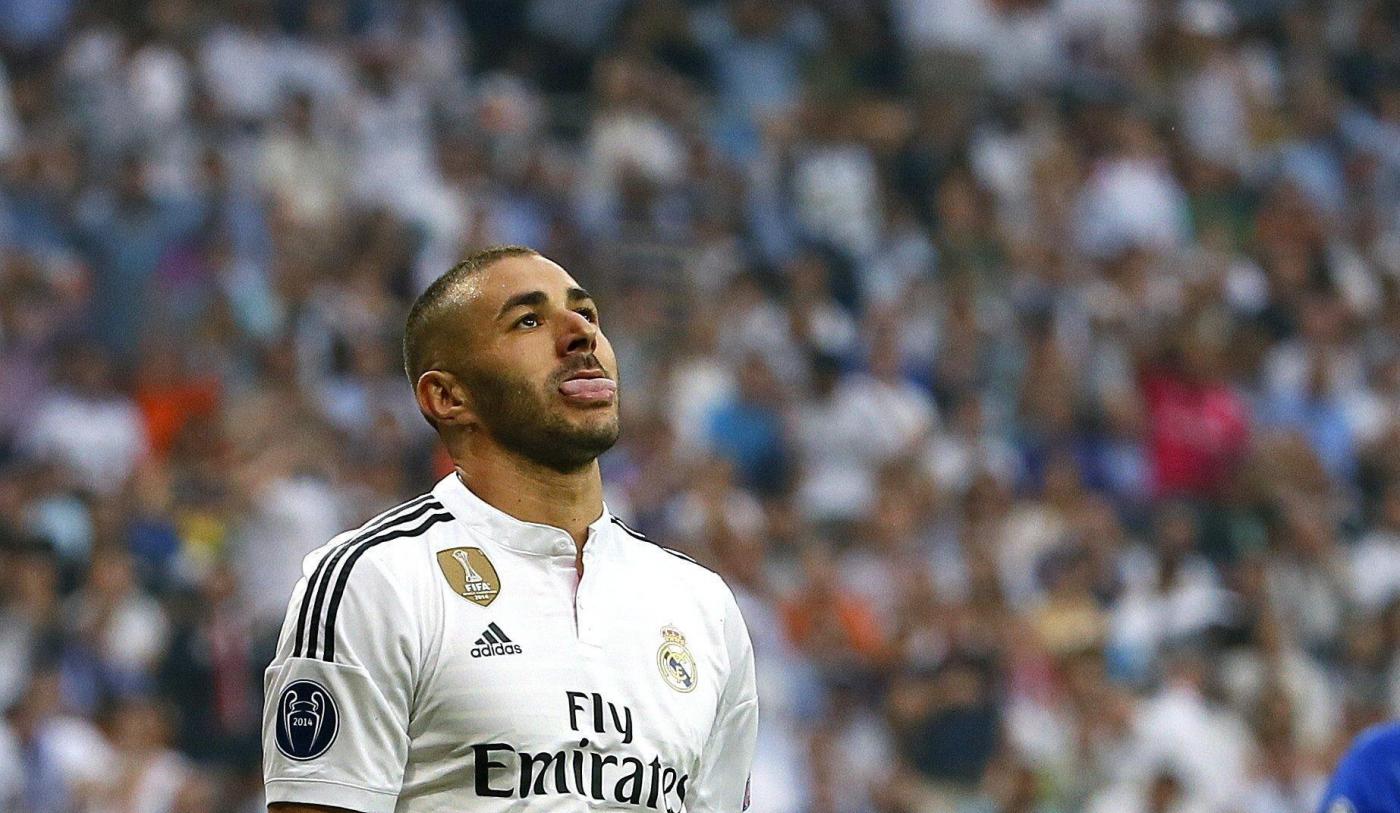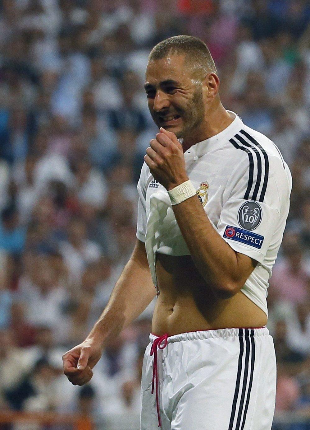 Real Madrid's French striker Karim Benzema reacts during their UEFA Champions League semi final second leg soccer match against Juventus FC played at Santiago Bernabeu stadium, in Madrid, Spain, 13 may 2015. EFE/JuanJo Martin